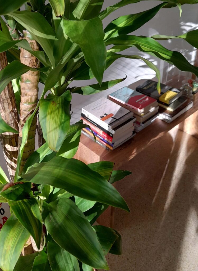 Me gusta deleitarme mirando los libros en mi biblioteca, recorriendo cada lomo, cada título, esperando escuchar la voz de la escritora o del escritor, alerta, muy atenta al llamado del libro.